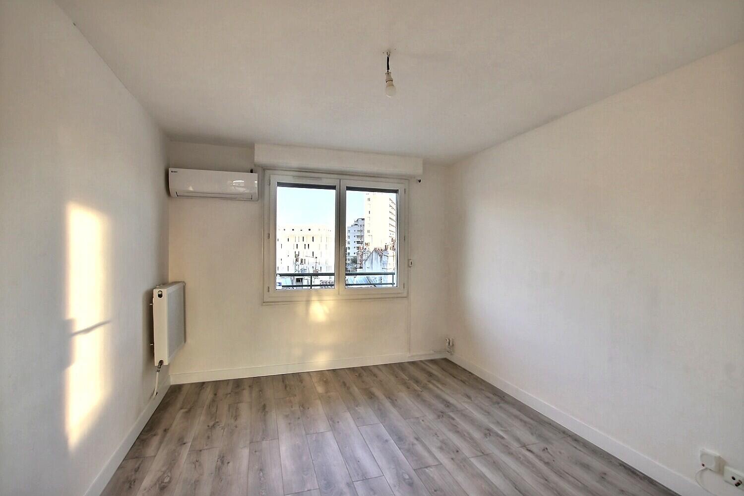 Un appartement entierement rafraichi de type 3 situé au 7ème étage, composé d'un grand hall d'entrée, d'un séjour avec climatisation réversible, d'une cuisine aménagée avec loggia, de deux chambres dont une avec dressing et l'autre donnant sur un balcon, d'une salle d'eau avec wc séparé et d'une cave.