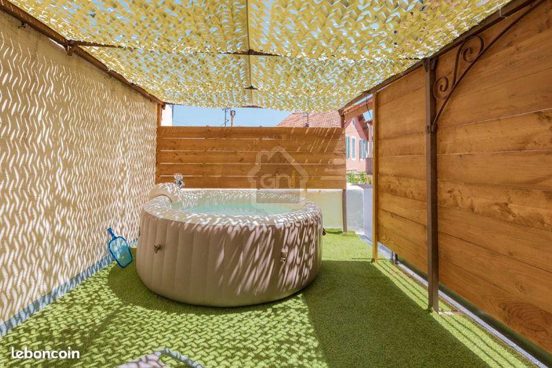 Appartement en RDC coté rue, composé d'un séjour, une cuisine équipée (plaques, lave vaisselle, hotte aspirante) ouverte, 2 chambres, placards, une dépendance sur la cour avec une terrasse, climatisation réversible, double vitrage.