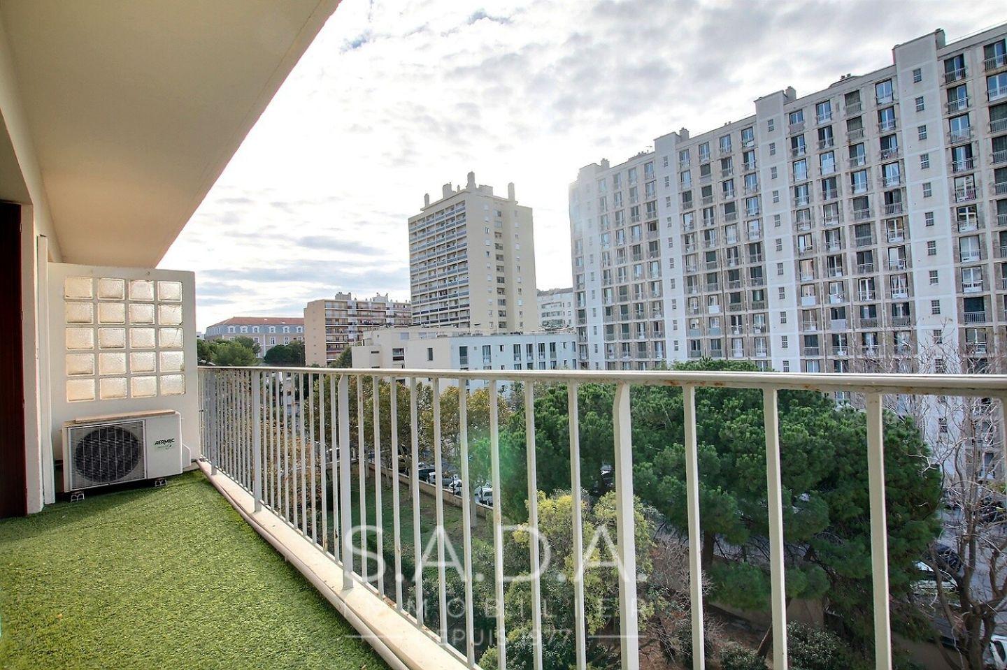 sadaimmobilier professionnel de l'immobilier depuis 1977 vous propose : à proximité de la plage des Catalans, du palais du Pharo ainsi que des transports et de toutes les commodités, un appartement de type 3 traversant exposition Sud / Nord au 5ème étage avec ascenseur d un ensemble immobilier semi récent avec gardien composé d une entrée avec placard desservant une cuisine avec une loggia fermée, un séjour donnant sur une terrasse au calme trés lumineuse, deux chambres, une salle de bains et un wc séparé, espace buanderie, cave, double vitrage.