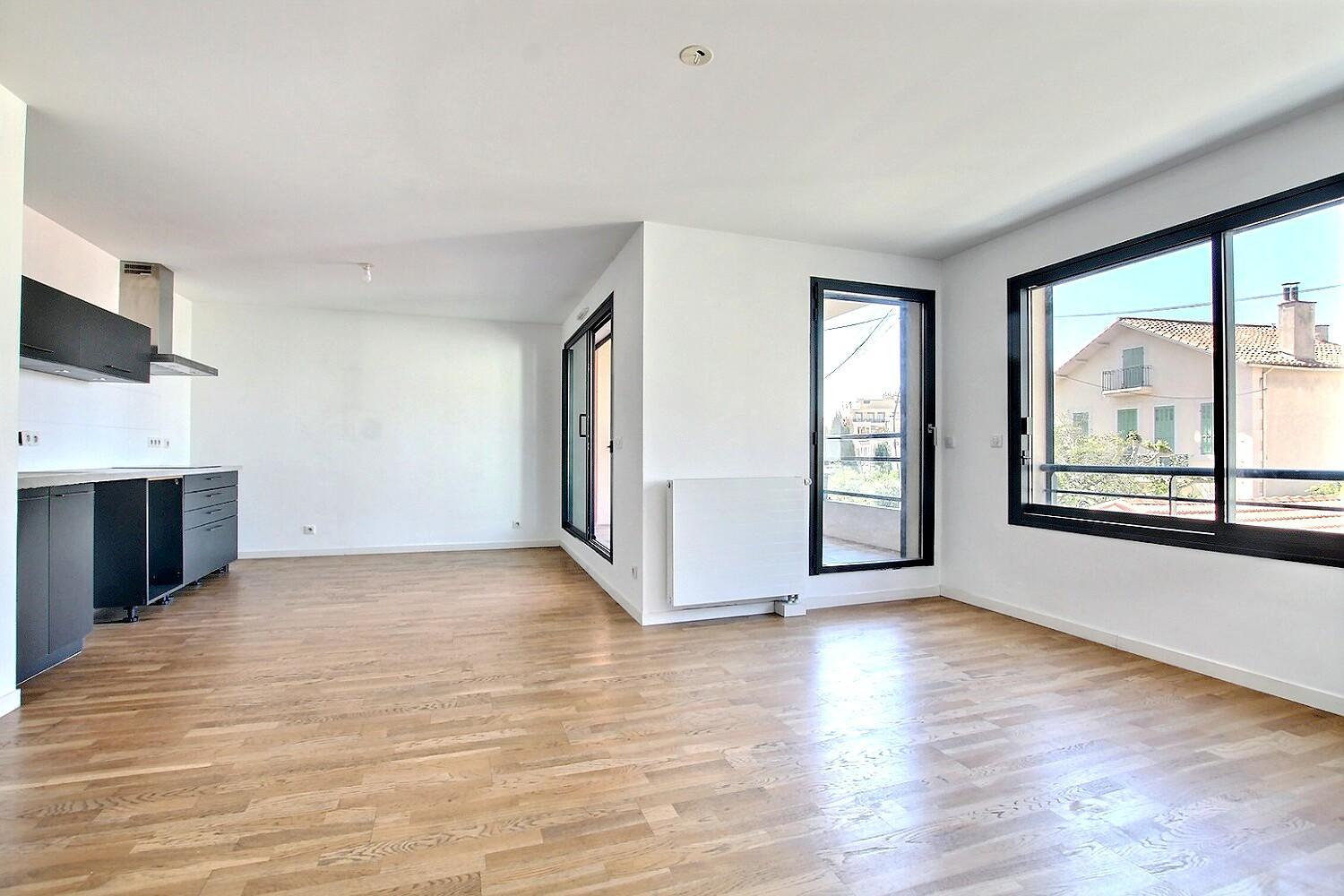 sadaimmobilier professionnel depuis 1977 vous propose un appartement T3 situé dans une résidence de standing construite en 2014 à proximité des commerces de Bompard au 1 er étage avec ascenseur ce bel appartement aux prestations soignées dispose de tout le confort moderne et d 'un accès PMR, il est composé d'une entrée / séjour pièce principale avec cuisine équipée ouverte et grand placard, le séjour donnant sur une belle terrasse au calme avec vue agréable, deux chambres, une salle de bains, un w-c séparé. L'appartement est entièrement parqueté, le chauffage est collectif par radiateur ainsi que l'eau chaude. Possibilité d achat d un box dans la résidence.