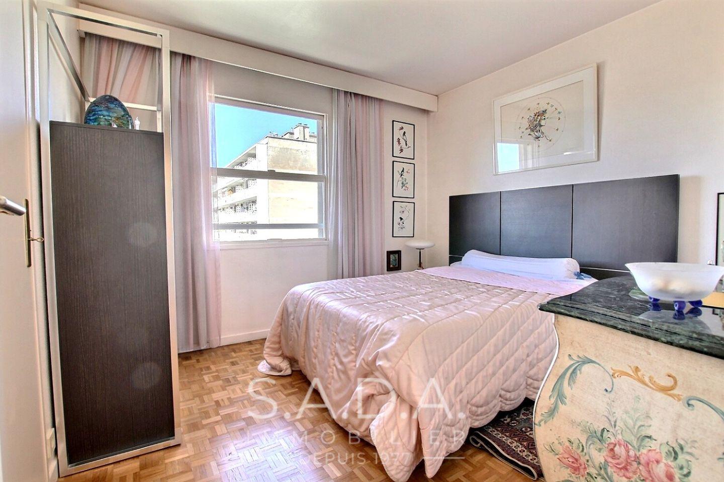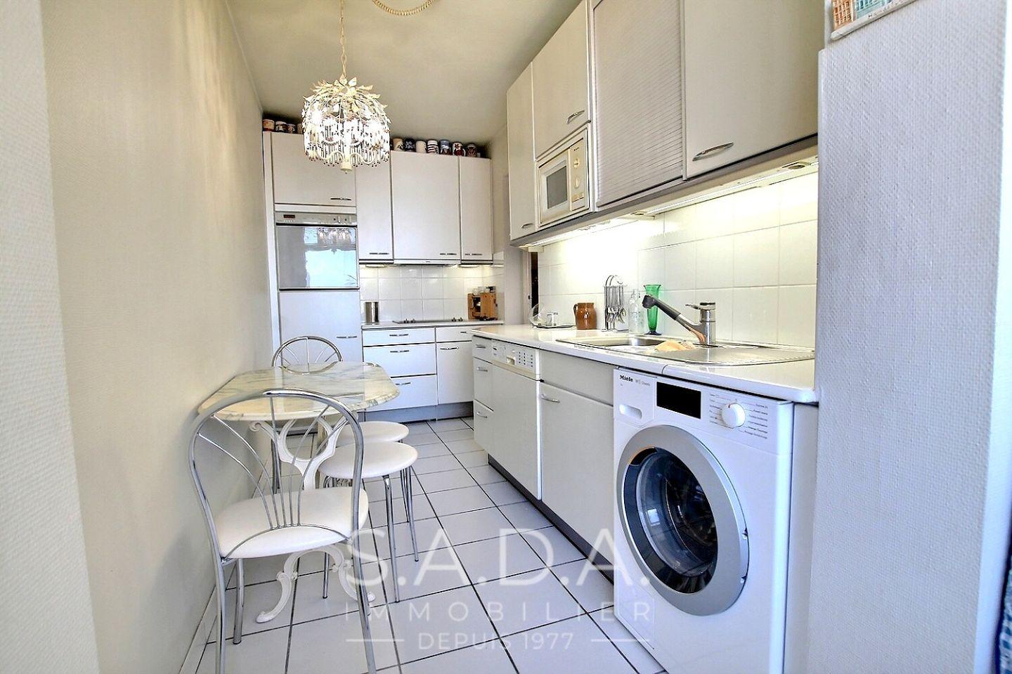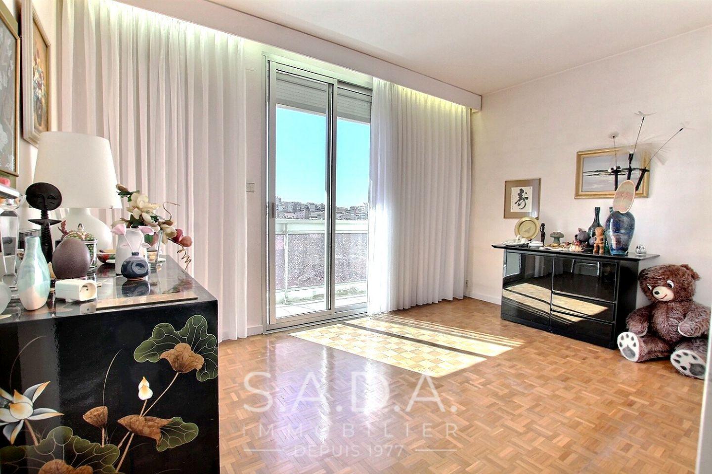 A proximité de la plage des Catalans et de toutes les commodités, T3 double exposition en étage élevé avec une vue dégagée d un immeuble semi récent avec ascenseur et gardien composé d une entrée desservant une cuisine séparée avec une loggia fermée, un séjour exposition Sud donnant sur un grand balcon ou l on peut déjeuner à deux, deux chambres, une salle de bains, wc séparé, cave, parking commun au pied de la résidence. Possibilité d achat box fermé en sus.