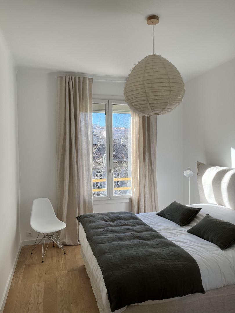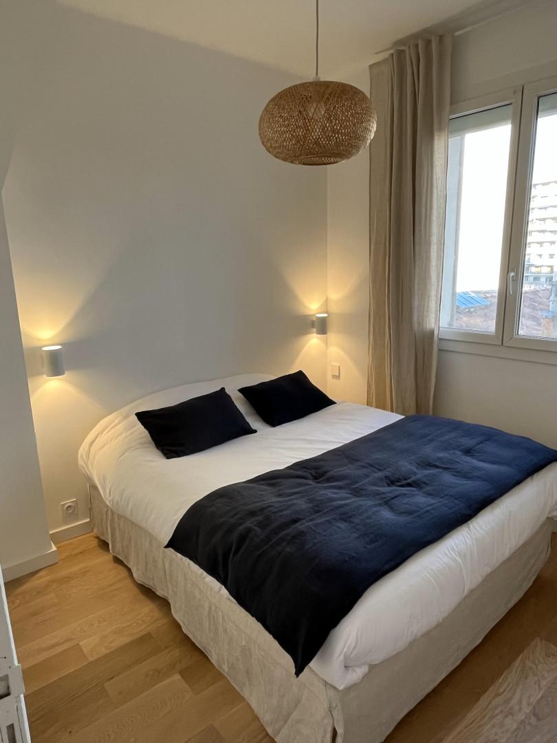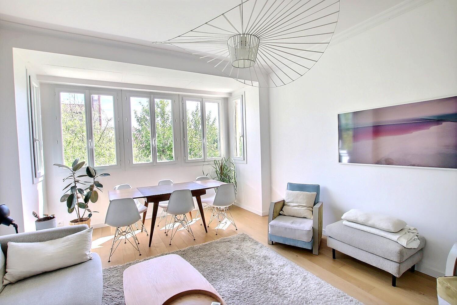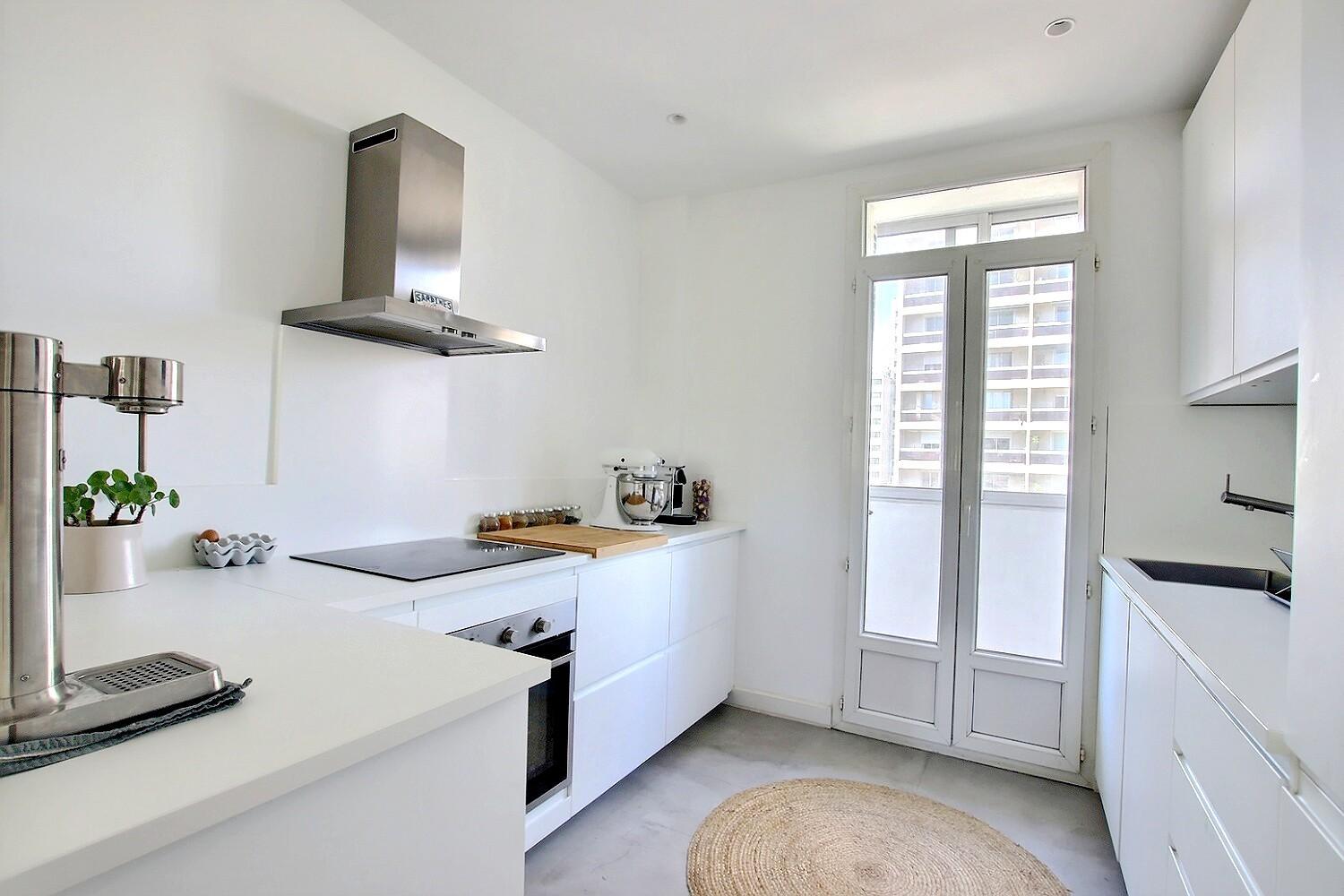 Situé au coeur du 7ème Arrondissement, élégant T3 traversant refait à neuf il y a peu, au 5 ème étage avec ascenseur d'un immeuble ancien composé d'une vaste entrée desservant un espace de vie lumineux exposition Sud, une cuisine séparée équipée donnant sur une loggia fermée, deux chambres, une salle de bains et ainsi qu'un WC séparé, cave.