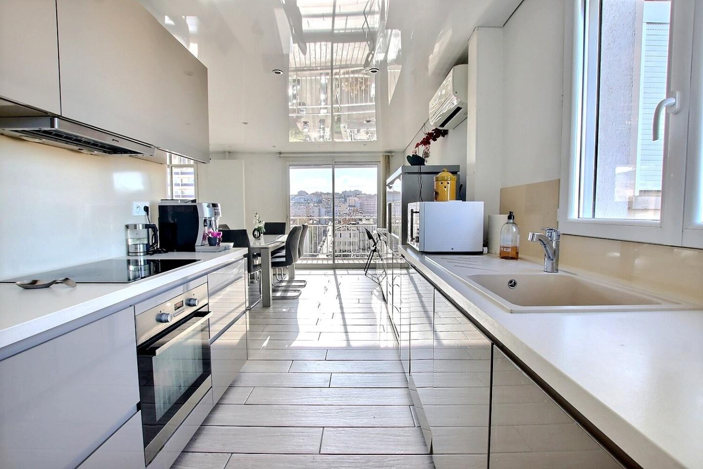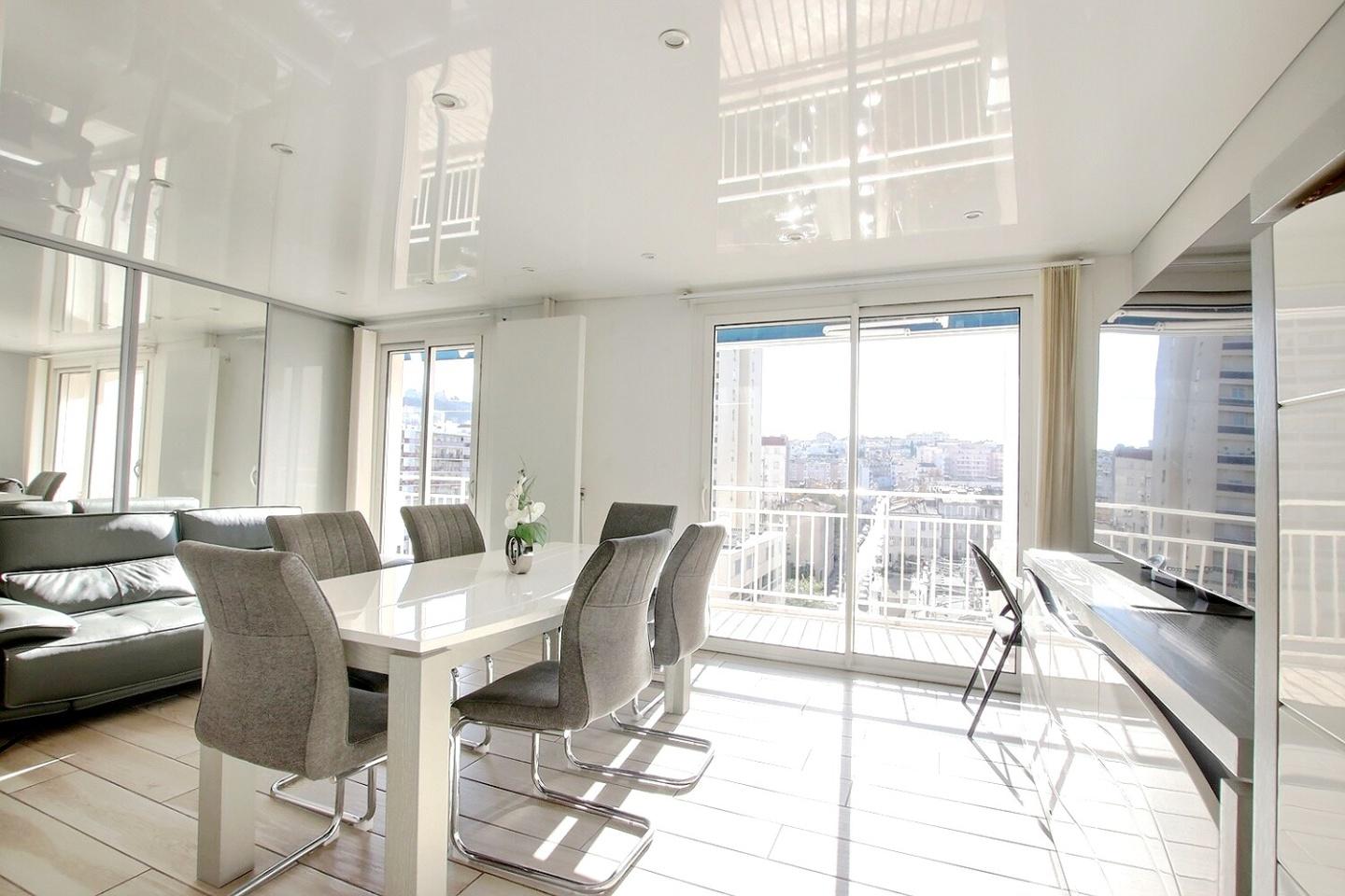 A deux pas de la plage des Catalans et du palais du Pharo, T2 entièrement refait en étage élevé avec ascenseur composé d une entrée avec placards desservant une vaste pièce à vivre très lumineuse exposition Sud donnant sur un grand balcon avec un vue dégagée et Notre Dame de la Garde. une cuisine ouverte donnant sur un loggia fermée, une chambre donnant sur le grand balcon, une salle d eau, wc, cave.